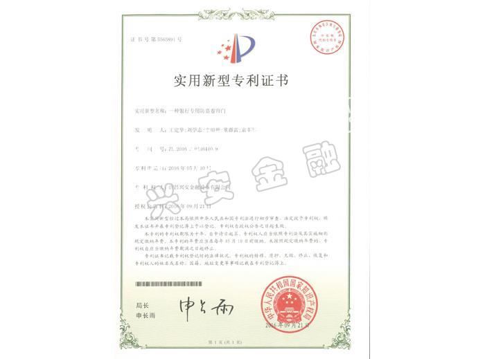 可視指紋開鎖聯(lián)動(dòng)門專利證書
